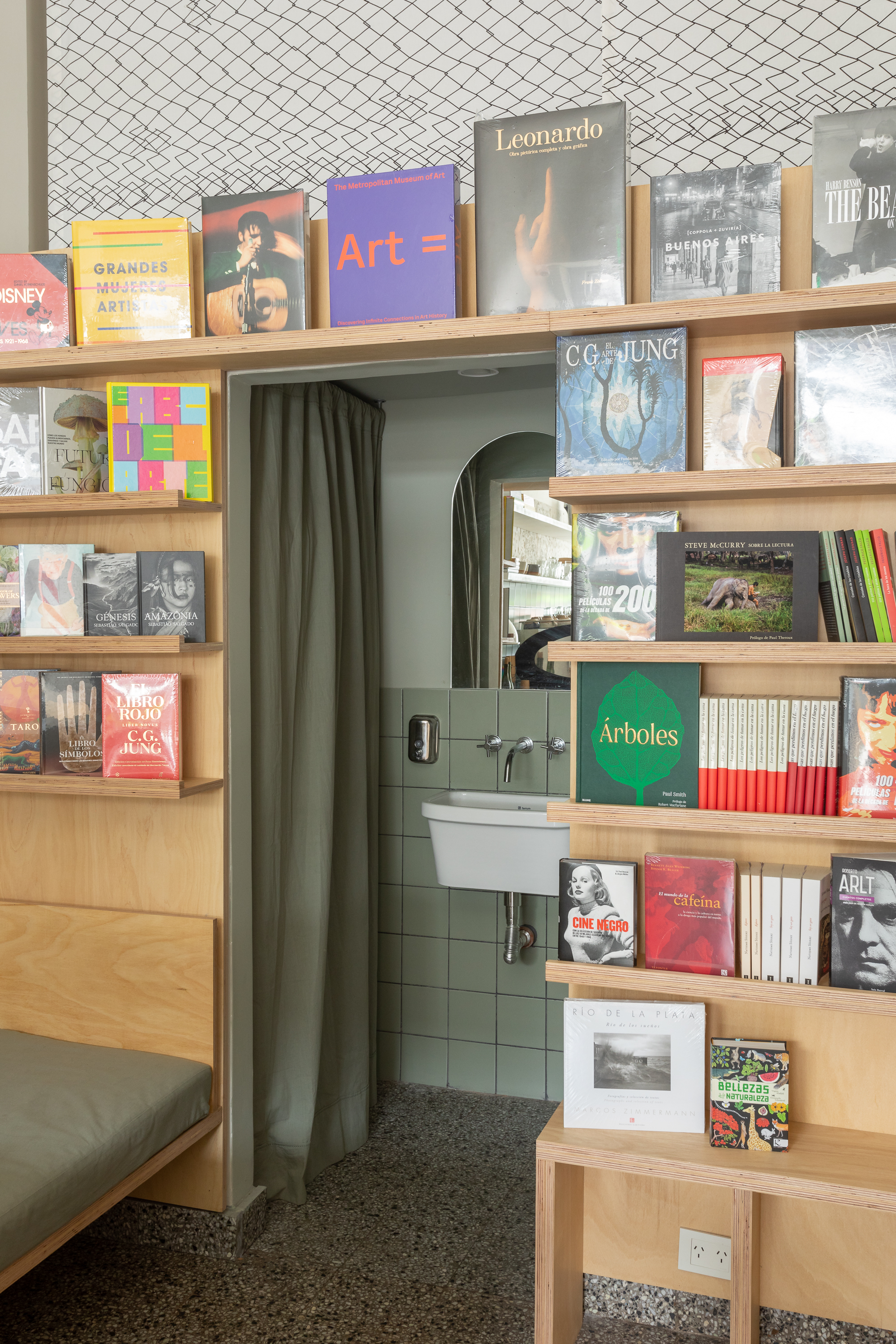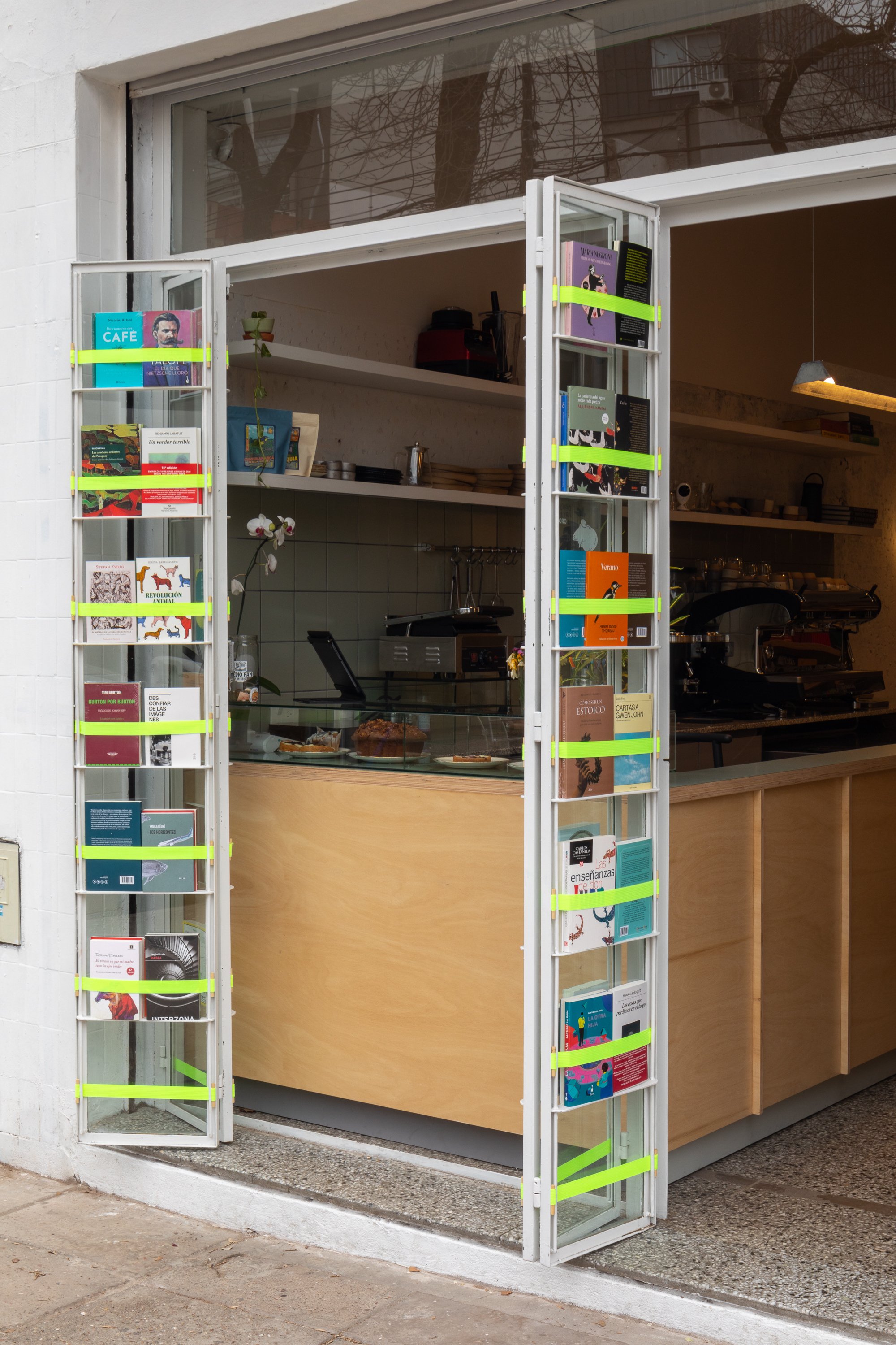 La fachada evoca los puestos de diarios que vemos dispersos en la ciudad. Con puertas plegables y con capacidad para albergar todo tipo de publicaciones, la misma permite jugar con la apertura de 2 o 4 hojas para lograr distintas configuraciones. Los libros se exhiben allí, sujetos por un sistema de elásticos y trabas; dando al escaparate, la posibilidad de cambiar de piel cuantas veces quiera.